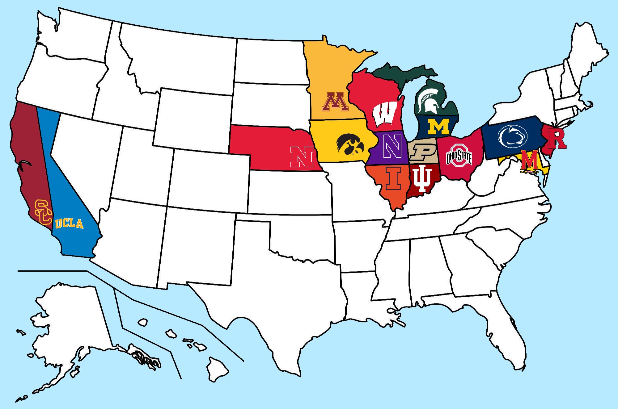 Big 10 Map With Usc And Ucla