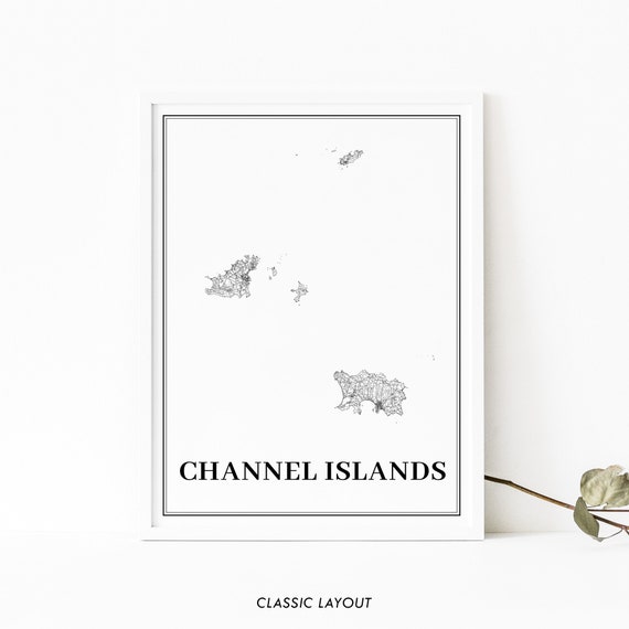 Channel Islands Map Print, UK United Kingdom Road Map Art Poster