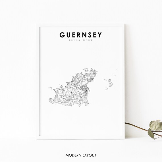 Guernsey Map Print, Channel Islands UK Map Art Poster, Bailliage